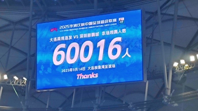 9月14日讯 据博主“从小就是大连球迷”消息,英博本轮主场作战 现场观赛人群 为60016人。