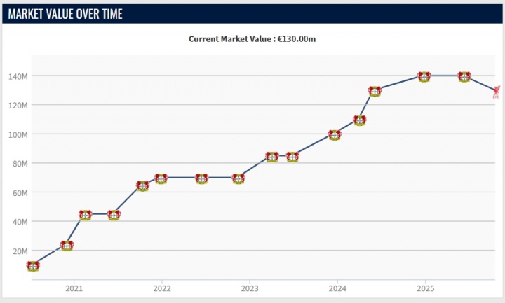 维尔茨加盟利物浦的初始转会费1.25亿欧,曾创下英超转会费之最,随后被伊萨克以1.45亿欧打破。
