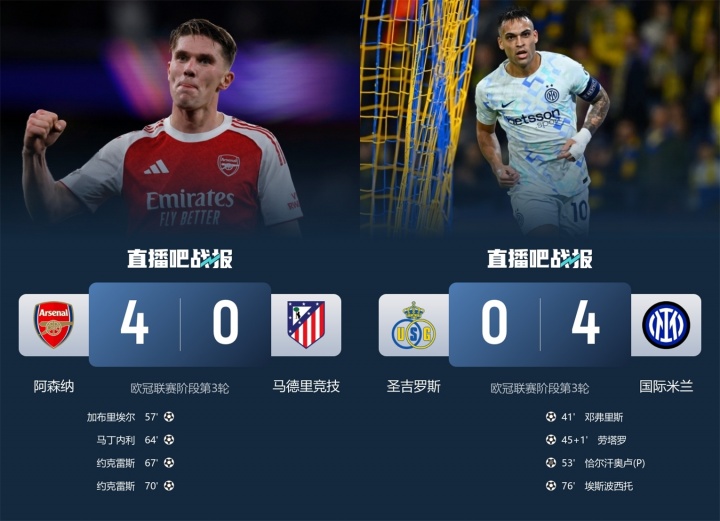 10月22日讯 欧冠第三轮首个赛事 日,巴黎7-2狂胜药厂,巴萨6-1暴打奥林匹亚科斯,免费欧洲杯直播阿森纳4-0横扫马竞,国米4-0横扫圣吉罗斯。