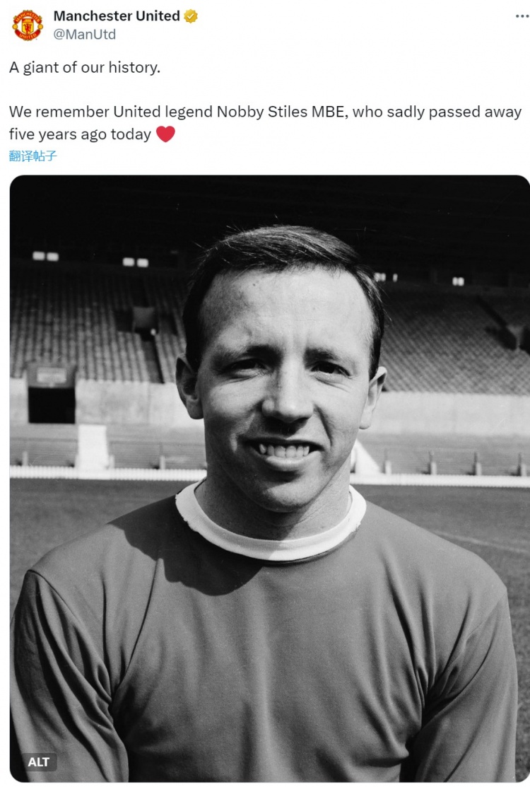 曼联名宿斯蒂尔斯去世五周年,曼联官方社媒写道:“我们历史上的巨人,我们缅怀曼联传奇斯蒂尔斯,他于五年前的今天去世。”